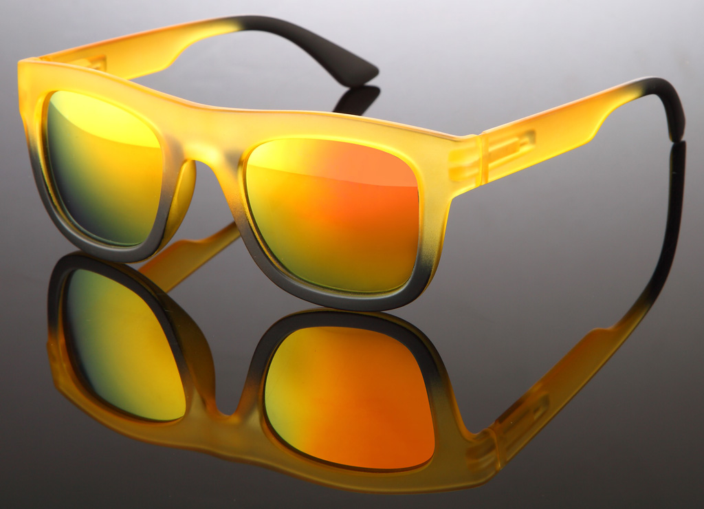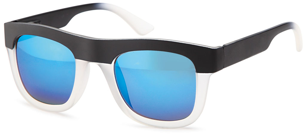 Matt-transparente u. melierte Wayfarer Sonnenbrille mit verspiegelten Gläsern