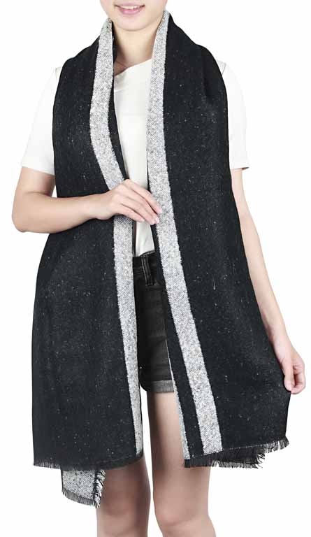 Schultertuch mit breiten Streifen, schwarz+weiß