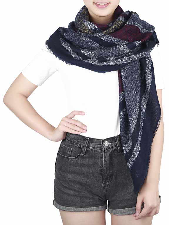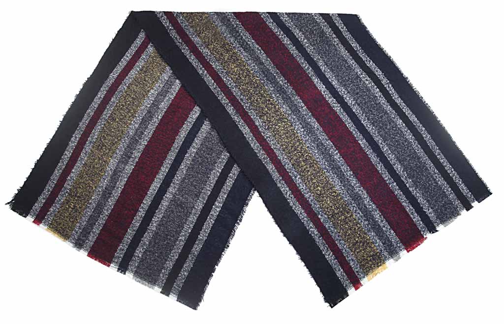 Schultertuch mit breiten und engen Streifen, melange marineblau+bordeaux+ camel+weiß