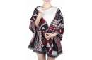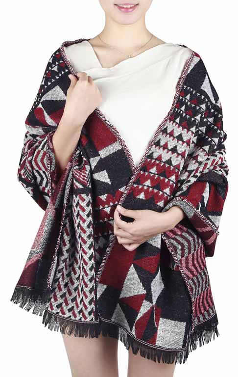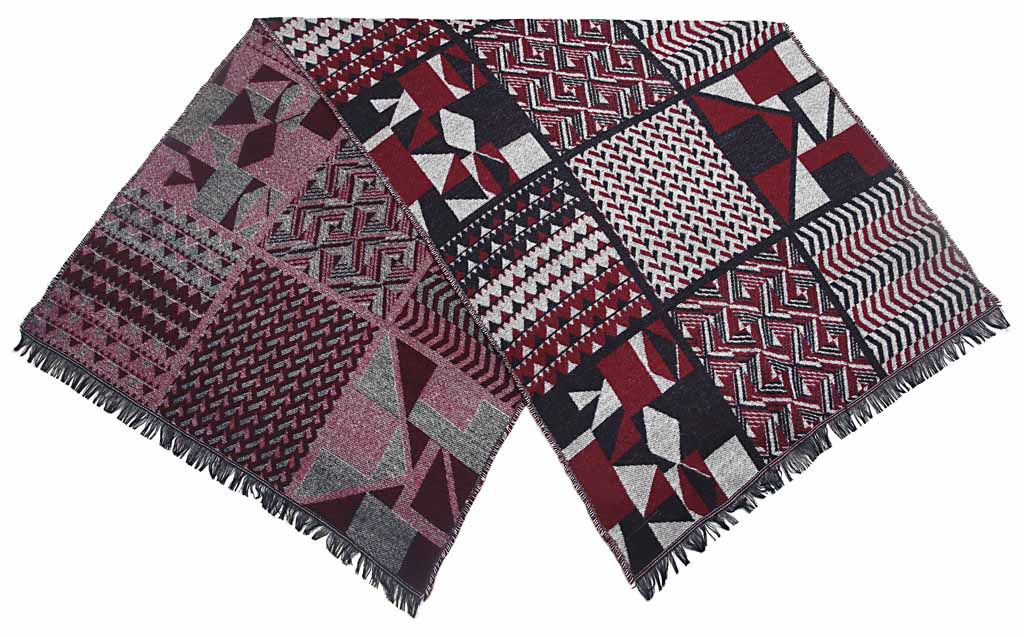 Schultertuch mit geometrischem Muster, schwarz+weiß+bordeaux