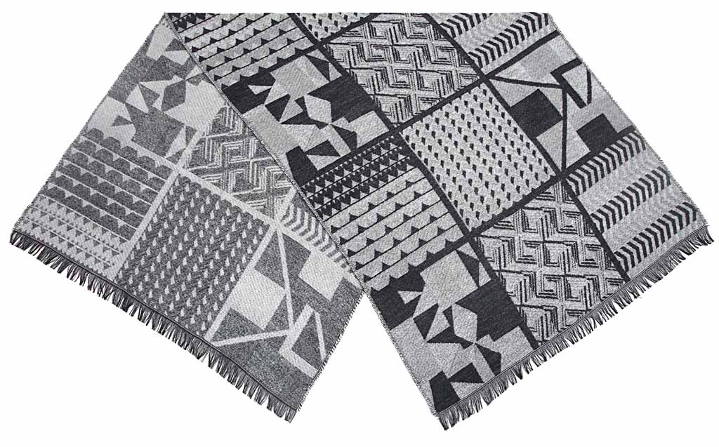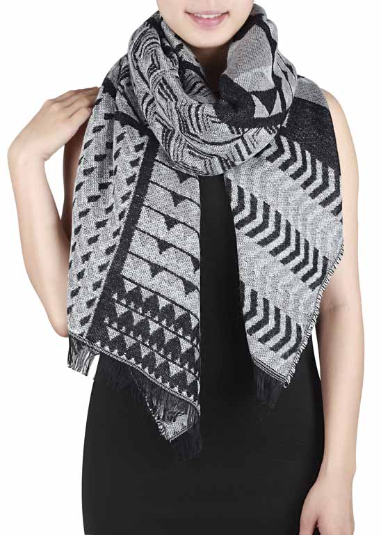 Schultertuch mit geometrischem Muster, schwarz+weiß+hellgrau